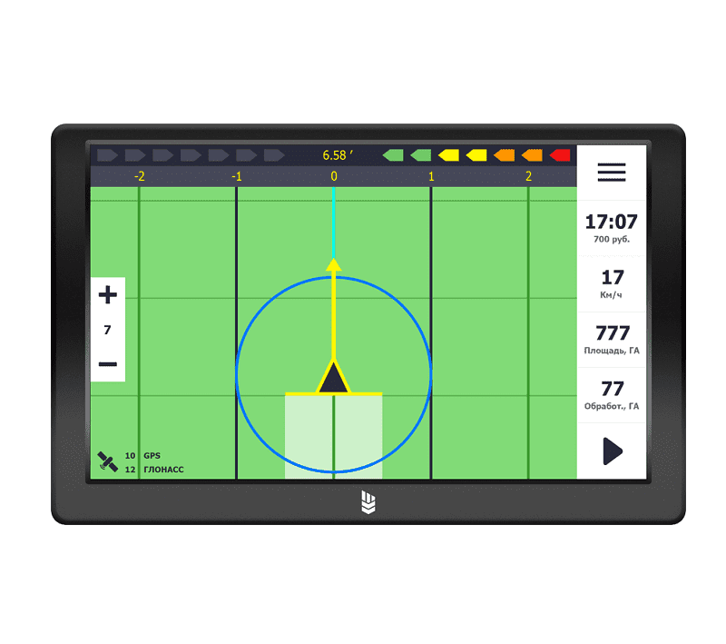 Использование агронавигатора «Кампус» увеличивает точность процесса обработки поля и исключает вероятность возникновения необработанных участков полей или перекрытий, дает возможность выполнять обработку в ночные часы, во время тумана и при недостаточной видимости.