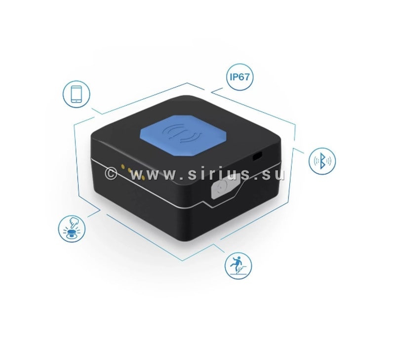Миниатюрный трекер обладает размером всего 44x43x20 мм и весом в 40 грамм. Оснащен двумя программируемыми кнопками управления. Передача данных о местоположении трекера передается с использованием встроенных GSM/ГНСС-антенн.